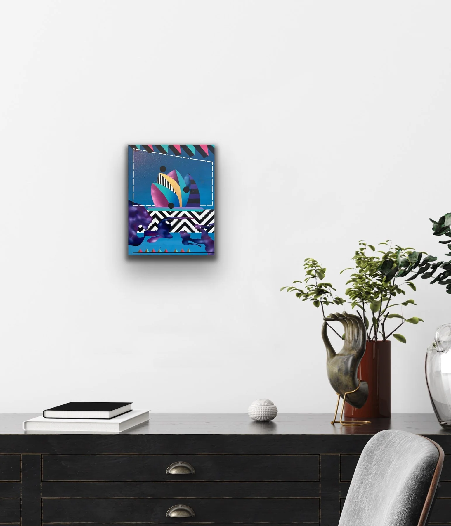 In diesem Gemälde entsteht eine Balance aus Klarheit und Auflösung. Linien, Punkte und Muster geben eine Struktur vor, die zugleich von weicheren, fließenden Formen unterlaufen wird. Es wirkt, als würde sich Ordnung im selben Moment wieder entziehen.