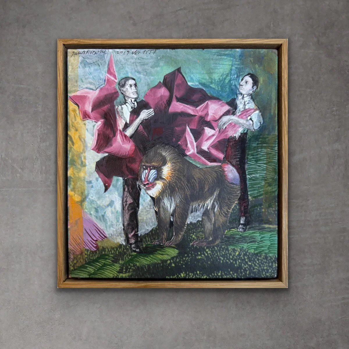 Jakob Roepke is a master of visual invention. His collages feel like fragments from a dreamlike in-between world: familiar figures encounter wild animals, surreal scenes merge with patterns, colors, and ornaments. The everyday slips into the fantastic, the known into the strange – yet always with a trace of familiarity.