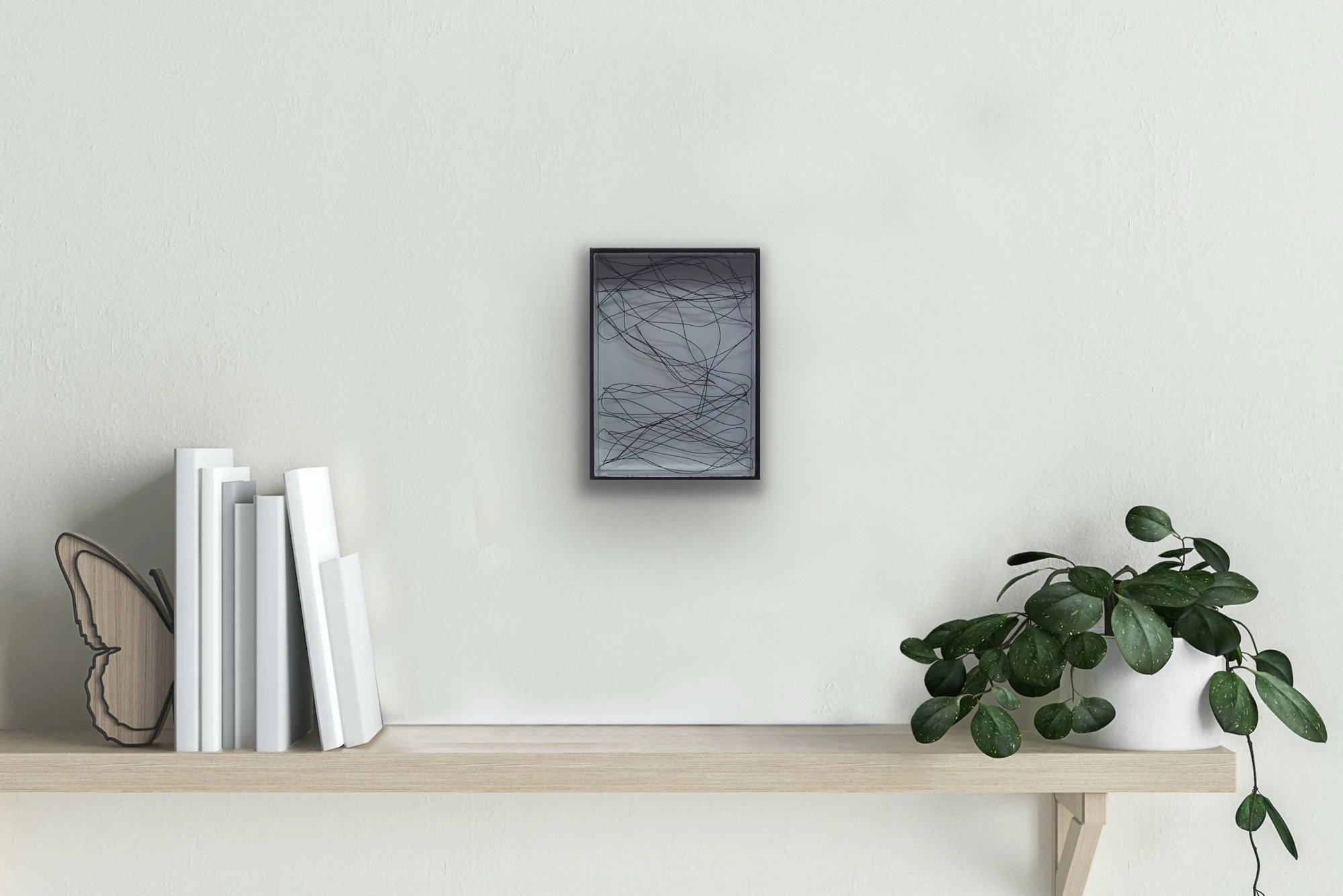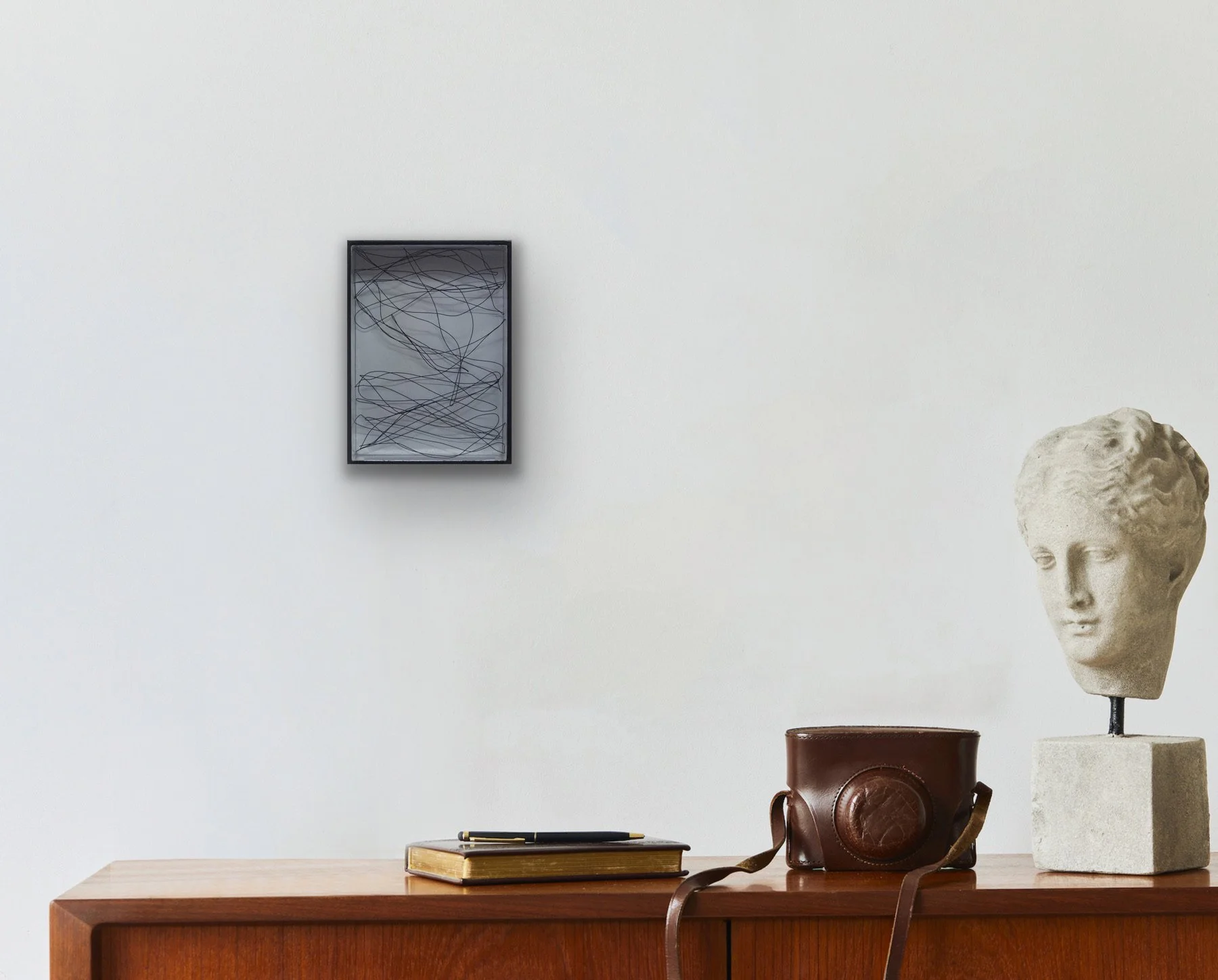Sebastian Menzke・”dr2-2”・23 x 16 x 5 cm Stahldraht, Epoxidharz auf Holz geschichtet, im Stahlrahmen