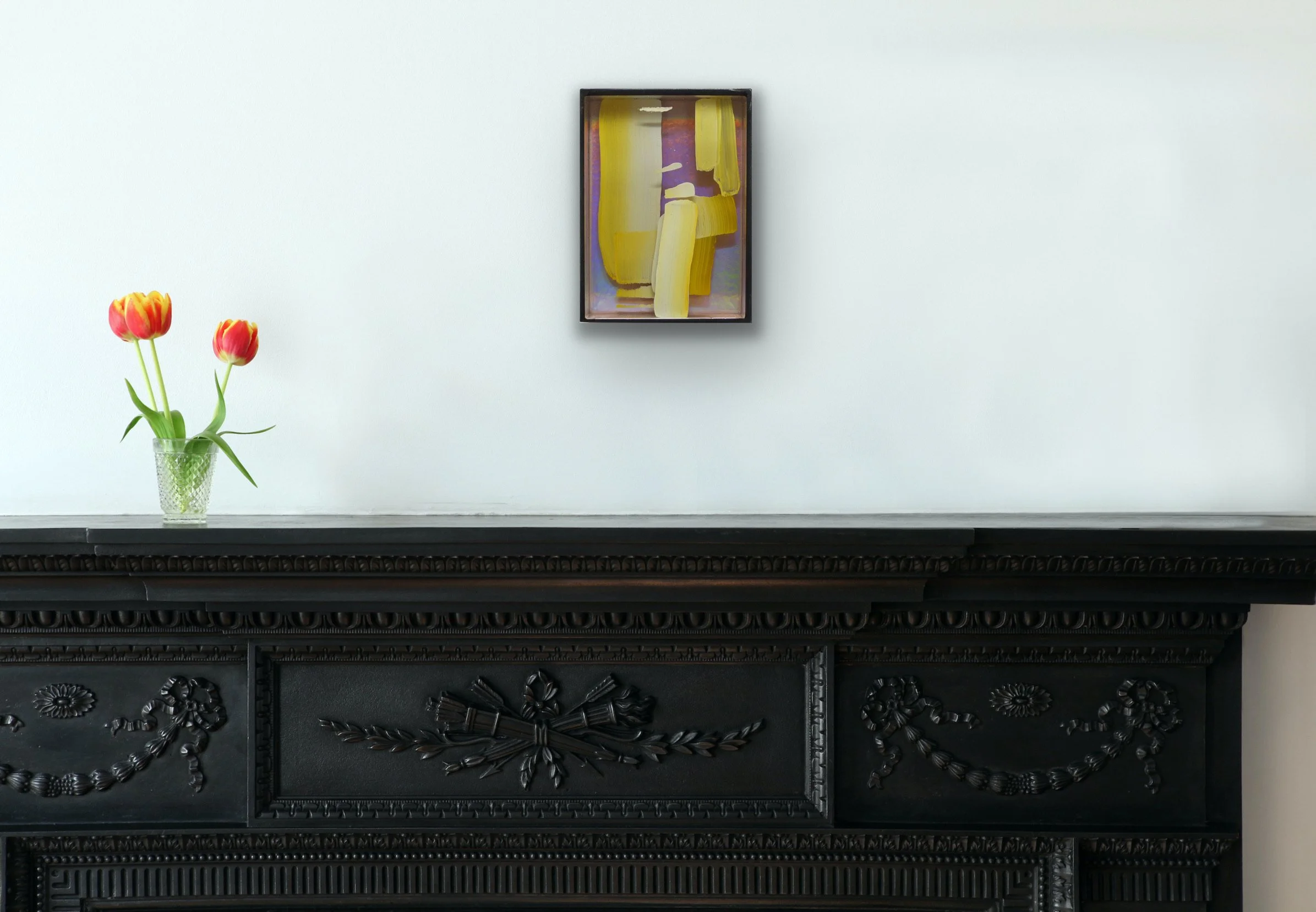 Trotz des kleinen Formats entsteht ein monumentaler Eindruck. Die leuchtenden Farbbahnen wirken wie eingefrorene Bewegungen, eine festgehaltene Choreografie von Malerei und Material. Die glatte Oberfläche des Harzes verstärkt dabei den Eindruck von Räumlichkeit und Verwandlung.